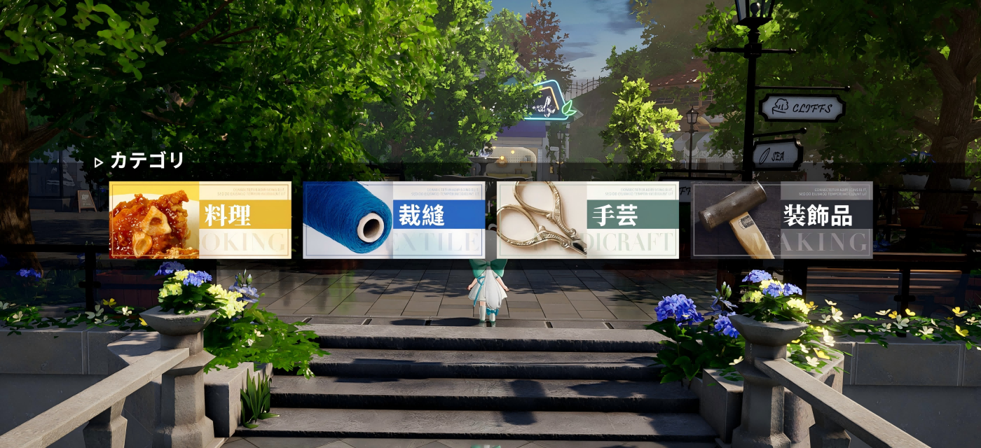 探索で入手したレシピで料理や衣装、家具までなんでも自分で作れちゃう。ありきたりな日常を自分のアイディアで変えてみよう。