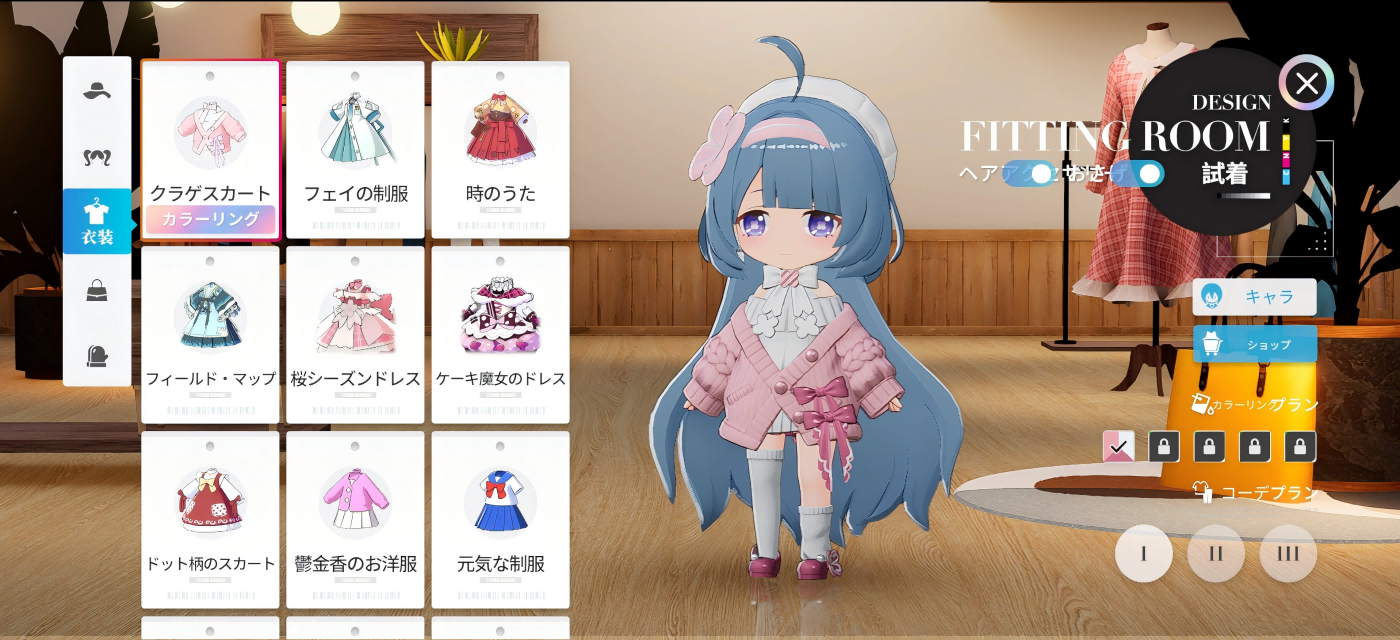 その日の気分に合わせて、衣装をコーディネート。染色機能を使って、洋服からアクセサリー、ヘアスタイルまで色んなカラーやデザインを楽しめる。あなたの個性を打ち出して、自分だけのコーディネートを楽しもう。